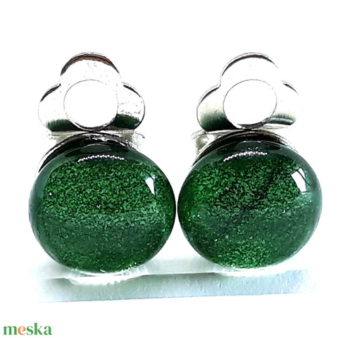 Szikrázó ezüstfenyő sötétzöld klipsz üveg fülbevaló, NEMESACÉL szilikon párnával, üvegékszer