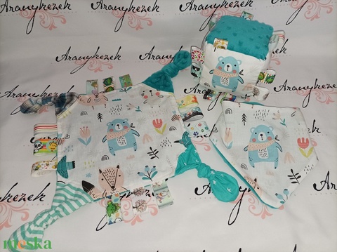 Babakocka oldalai 11x11 cm ebből az egyik oldala minky színben passzoló a cimkekendőhöz.