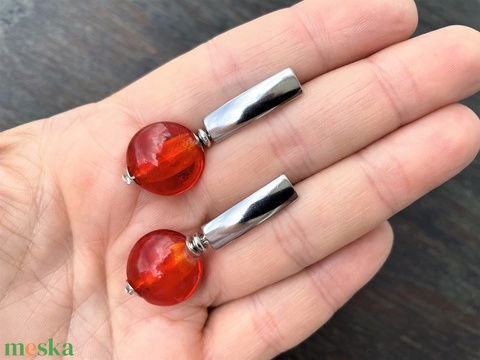 Tűzpiros muránói fülbevaló nemesacél akasztóval