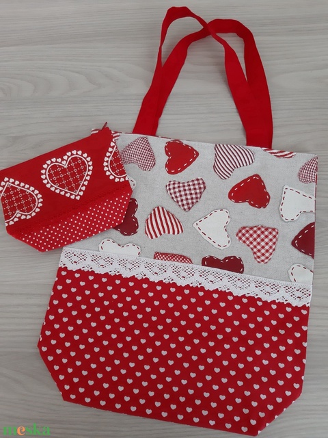 Shopper és cipzáras nesszeszer szett - piros, szívecske mánia