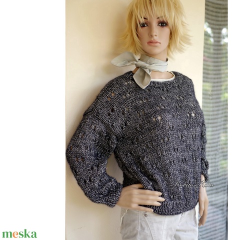 VINTAGE STAR "HELKA" - exkluzív kézzel kötött alpaka-pamut pulóver / tuareg
