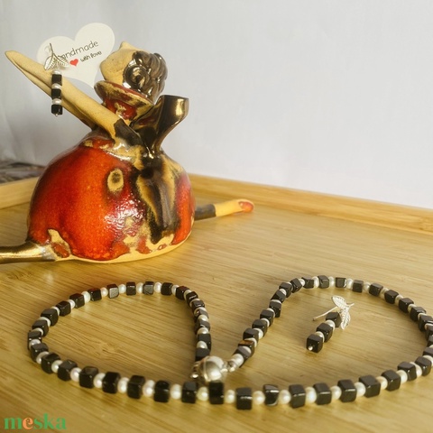 - Anyaga: ónix, ezüst, tenyésztett gyöngy