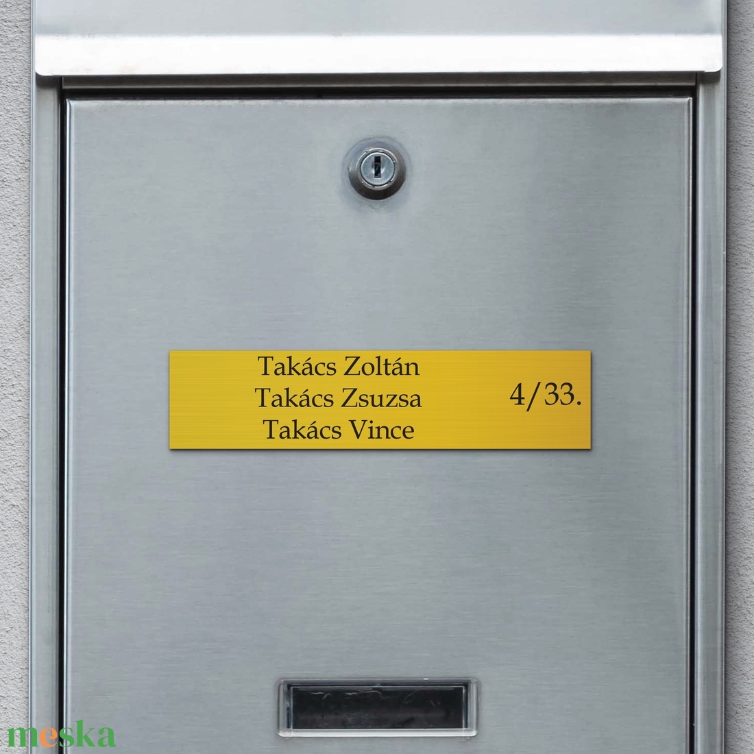 A tábla elegáns, minimalista megjelenésével tökéletesen illeszkedik bármilyen környezetbe, legyen az lakás bejárata, postaláda, vagy irodai ajtó.