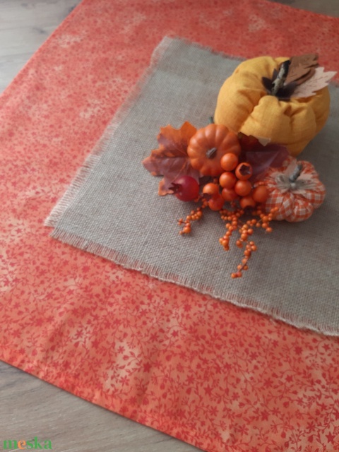 Őszi terítő, asztalközép - apró virágok narancssárga színvilágban