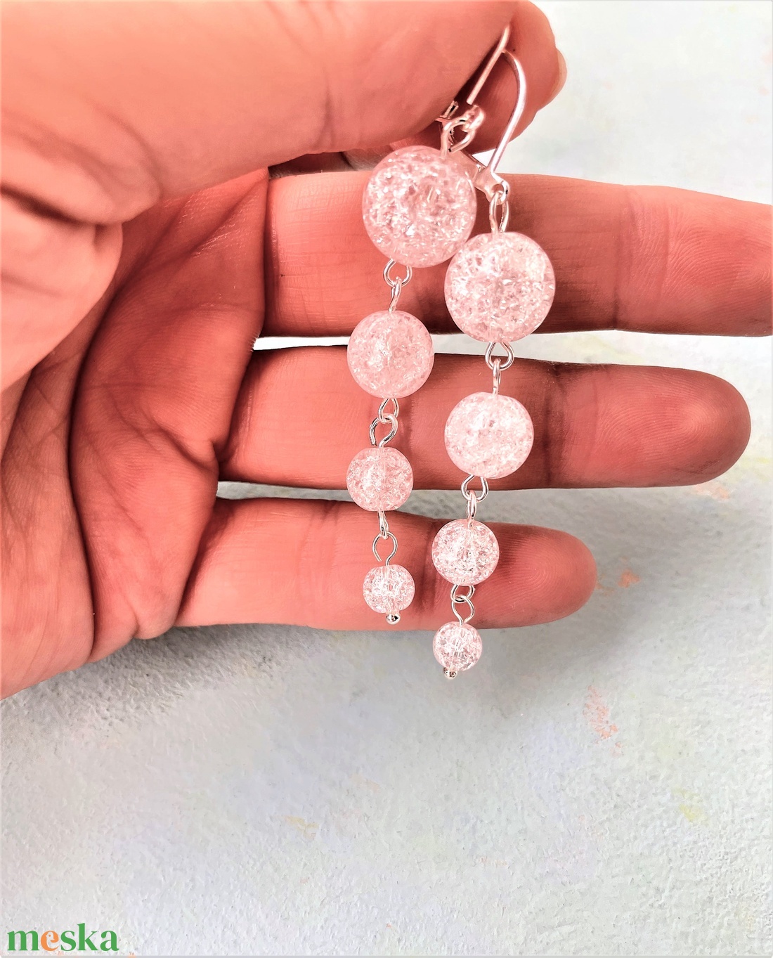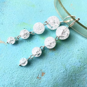 Jégcsap - hosszú, 4 gyöngyös roppantott hegyikristály fülbevaló