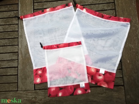 NoWaste 2+1 db bevásárló zacskó , piros alma