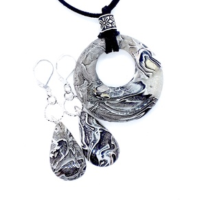 Színes ékszerszett, virágos medál fülbevalókkal ékszergyurmából, egyedi ajándék nőknek