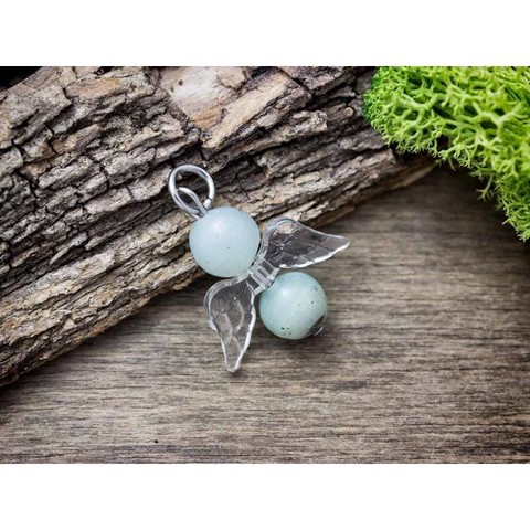 Az angyalok szerint, ha mindenki megtanulna kérdések, kételyek nélkül bízni az ösztöneiben, a világ sokkal békésebb hely lehetne. Bízz magadban, és válaszd ki saját védőangyal vagy segítő angyalodat! A megérzés útba igazító, és nem megmagyarázó rendszer. Tanulj meg tehát bízni az ösztöneidben anélkül, hogy mindig keresnéd a magyarázatokat, a visszaigazolást.A valódi ásvány medál fém akasztó részét acélból / orvosi fémből készítettük, így tökéletesen antiallergén. Az angyalka szárnya akrillból készült. Az angyalka fejét, és testét valódi 8mm-es amazonit ásvány gyöngyök alkotják.Amit az amazonitról érdemes tudnod:Az amazonit nagyrészt átlátszatlan kő, esetleg halvány tejfehér felhőkkel a világoszöldtől a kékes-zöldön keresztül a sötét zöldig/kékig. Ezt a követ mostanában méltánytalanul mellőzik, pedig sokféle hasznos gyógyhatással bír. Lelki gyógyhatás:Az amazonit nyugtató hatással bír az idegrendszerre. Mivel az idegrendszer kontrollálja érzelmeinket, így ez a kő csillapítja a bennünk lévő feszültséget és segítenek nyugalmunk megőrzésében, akár bosszantó élethelyzetekben is. Depresszió és érzelmi problémák esetén felébreszti az elvesztett életörömöt, megnyitja a szívet. Mindennapjaink során az amazonit segít lazábbnak lenni, növeli a kitartásunkat. Testi gyógyhatás:A régi időkben az amazonitot a szülő nők kezébe adták, segítve ezáltal a fájásokat és a könnyebb szülést. Menstruációs görcsök idején is számíthatunk a kő természetes segítségnyújtására, mivel a köldök csakra környéki fájdalmak enyhítésére is alkalmas. Mágikus hatás:Már az egyiptomiak is gyógykőként használták. Az amazonit segít céljaink elérésében. Csillagjegyei: Mérleg, Halak Csakrái: Köldökcsakra, Gyökércsakra Figyelem! Az ásványokat, kristályokat az őskor óta használják a test, a lélek és az érzelmek harmonizálására. Az ókori kultúrákban kifejezetten elterjedtek voltak. Az évezredek alatt számtalan tudás és tapasztalat gyűlt össze róluk. Ásvány ékszereink leírásánál a meghatározó szakirodalom alapján készült összegzések olvashatók. Fontos! Az ásvány ékszerek viselése, az ásványok és kristályok gyógyításban, alternatív terápiaként való használata nem helyettesíti a modern orvostudományt, a gyógyszeres kezelést. Betegség esetén az öngyógyítás helyett kérjük, forduljon szakemberhez!