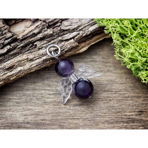 Az angyalok szerint, ha mindenki megtanulna kérdések, kételyek nélkül bízni az ösztöneiben, a világ sokkal békésebb hely lehetne. Bízz magadban, és válaszd ki saját védőangyal vagy segítő angyalodat! A megérzés útba igazító, és nem megmagyarázó rendszer. Tanulj meg tehát bízni az ösztöneidben anélkül, hogy mindig keresnéd a magyarázatokat, a visszaigazolást.A valódi ásvány medál fém akasztó részét acélból / orvosi fémből készítettük, így tökéletesen antiallergén. Az angyalka szárnya akrillból készült. Az angyalka fejét, és testét valódi 8mm-es ametiszt ásvány gyöngyök alkotják.Amit az ametisztről érdemes tudnod:Az ametiszt a kvarccsoport legkedveltebb köve, az achát ásvány belső felszínén növekszik. Míg a kristály maga jó néhány centiméterre nő meg, az azt tartalmazó geóda akár több méter hosszú is lehet. Ennek a fenséges kőnek a színe a mély lilától a halvány levenduláig terjedhet a benne lévő magnézium és vas mennyiségétől függően. Az ametiszt a királyi ékszerek tradicionális színe volt, mivel a lila a jólétet és gazdagságot szimbolizálta. Az ametisztet még ma is siker kövének tekintik, használja büszkén!Lelki gyógyhatás:Leonardo Da Vinci egyszer azt írta, hogy az ametisztben megvan az erő a gonosz gondolatok elűzéséhez és élénkíti az egyén intelligenciáját. Az ametiszt a haragot és a dühöt a szeretet pozitív energiájává alakítja át. Megtanít, miként változtassunk berögzött viselkedési mintáinkon. Lila színével korona csakránkhoz csatlakozva nagy segítségünkre lehet stresszes időszakainkban, mivel természetes nyugtató hatással bír. Segít alvászavarok esetén is, idegrendszeri stabilizáló hatása végett. Megakadályozza a visszatérő rémálmok ismétlődését. Használjuk ezt a követ meditáció során, nagyszerű segítség az elmélyülésben, mivel az ametiszt a bennünk lakó Istennel rezonál és segít kitárni az elmét az új gondolatok előtt.Testi gyógyhatás:Légzési és asztmatikus problémákkal szenvedőknek is hatékony segítsége lehet. Enyhíti a torokfájást, tisztítja a vért, kiegyenlíti a vérnyomást, ill. javítja a látást, sőt színvakság gyógyítására is használják. Jótékony hatással bír a bőrbetegségekre, gyakran használják migrénes fejfájás ellen is. Erősen méregtelenítő hatású.Mágikus hatás: Az ametiszt erősen védelmező kő, viselőjének segít kivívnia a jogos igazát, de védelmez tolvajok, betörők és átkok ellen.Csillagjegyei: Szűz, Nyilas, Vízöntő, Halak, KosCsakrái: Gyökércsakra, Koronacsakra, Napfonatcsakra Figyelem! Az ásványokat, kristályokat az őskor óta használják a test, a lélek és az érzelmek harmonizálására. Az ókori kultúrákban kifejezetten elterjedtek voltak. Az évezredek alatt számtalan tudás és tapasztalat gyűlt össze róluk. Ásvány ékszereink leírásánál a meghatározó szakirodalom alapján készült összegzések olvashatók. Fontos! Az ásvány ékszerek viselése, az ásványok és kristályok gyógyításban, alternatív terápiaként való használata nem helyettesíti a modern orvostudományt, a gyógyszeres kezelést. Betegség esetén az öngyógyítás helyett kérjük, forduljon szakemberhez!