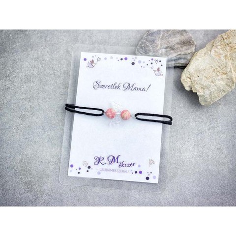 A számotokra állítottunk össze egy kedves ajándékot, szeretettel! A karkötőt a kártyával együtt kapjátok meg!A köszönő csomag tartalma: 1 db karkötő 1 db köszönő kártya Ez a karkötő remek meglepetés lehet bárkinek, akit szeretnél megajándékozni. A laminált kívánság kártya mérete 110×80 mm.Az angyalok szerint, ha mindenki megtanulna kérdések, kételyek nélkül bízni az ösztöneiben, a világ sokkal békésebb hely lehetne. Bízz magadban, és válaszd ki saját védőangyal vagy segítő angyalodat! A megérzés útba igazító, és nem megmagyarázó rendszer. Tanulj meg tehát bízni az ösztöneidben anélkül, hogy mindig keresnéd a magyarázatokat, a visszaigazolást.Ez a karkötőnk tökéletesen antiallergén, így fémre érzékenyeknek is bátran ajánljuk.A medál mérete: 28×20 mm. A valódi ásvány angyal medál fém akasztó részét acélból / orvosi fémből készítettük. Az angyalka szárnya akrillból készült. Az angyalka fejét, és testét valódi 8 mm-es rodokrozit ásvány gyöngyök alkotják.A karkötő microcord zsinóros kivitelének köszönhetően minden méretű csuklón kényelmes viselet. Speciális csúszócsomók segítségével van elkötve a zsinór, így méretre tudod igazítani. Fontos, hogy óvatosan húzd a zsineget a csomókon keresztül.A karkötő 14, és 20 cm-es csuklóméret között állítható. A microcord zsinór nagyon tartós, és könnyű nylon anyag, átmérője 1,7 mm.Amit a rodokrozitról érdemes tudnod:A rodokrozit egy karbonátásvány, a mangán-karbonát trigonális kristályrendszerű ásványa.Lelki gyógyhatása:Ha a rodokrozit belép az életembe, akkor eljött az ideje az önszeretetnek. Feltárja ebben való hiányosságaimat. Segítségével megtudhatom, amit tennem kell az önszeretet érdekében. Szeretetem révén közel kerülhetek önmagamhoz, sőt össze is olvadhatok saját magammal.Testi gyógyhatás:Enyhíti az asztmát és a légzési problémákat. Megtisztítja a keringési rendszert, veséket, helyreállítja a gyenge látást. Normalizálja a vérnyomást, stabilizálja a szívverést, erősíti az ivarszerveket. Tágítja a véredényeket, csillapítja a migrént.Csillagjegyei: Kos, Bika, Rák, Mérleg Skorpió, BakCsakrái: Szívcsakra, Koronacsakra Figyelem! Az ásványokat, kristályokat az őskor óta használják a test, a lélek és az érzelmek harmonizálására. Az ókori kultúrákban kifejezetten elterjedtek voltak. Az évezredek alatt számtalan tudás és tapasztalat gyűlt össze róluk. Ásvány ékszereink leírásánál a meghatározó szakirodalom alapján készült összegzések olvashatók. Fontos! Az ásvány ékszerek viselése, az ásványok és kristályok gyógyításban, alternatív terápiaként való használata nem helyettesíti a modern orvostudományt, a gyógyszeres kezelést. Betegség esetén az öngyógyítás helyett kérjük, forduljon szakemberhez!