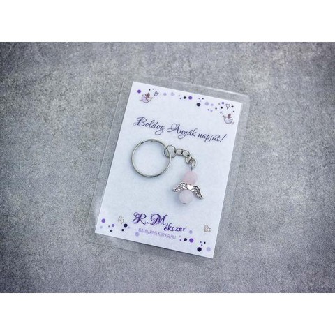 Számotokra állítottunk össze egy kedves meglepetést!"Boldog Anyák napját"feliratos ajándékkártya rózsakvarc kulcstartóvalA kulcstartót a kártyával együtt kapjátok meg!A köszönő csomag tartalma: 1 db rózsakvarc díszes kulcstartó 1 db köszönő kártyaVan, amikor nehéz szavakat találni, vagy egészen egyszerűen hangok nélkül szeretnénk kifejezni a gondolatainkat, érzéseinket. Ebben segítenek kívánság vagy köszönő kártyáink, melyek a kiválasztott kulcstartóval együtt csodálatos ajándékok lehetnek. A laminált kívánság kártya mérete 110×80 mm.Amit a rózsakvarcról érdemes tudnod:A festetlen rózsakvarc az egész világos, szinte áttetszőtől, a ködös középrózsaszínig terjed. Az egyik legnépszerűbb kövek egyike, amely szépséges küllemének és erős gyógyhatásának köszönhető. Története a görög és római mitológiába nyúlik vissza, amely szerint a rózsakvarc Erósznak és Ámornak a szerelem Isteneinek az emberek felé nyújtott ajándéka.Lelki gyógyhatás:Már tehát az ókoriak is hittek a kő szerelem terén gyakorolt pozitív hatásaiban. A rózsakvarc a szívcsakrán keresztül segít az érzelmi blokádok feloldásában, megnyitja belső kapukat, hogy a csodát, szeretetet és szerelem formájában magunkévá tehessük. Érzelmi blokkok feloldása a szerelem lelki és testi kiteljesedését segíti. Az érzelmi gátak felszabadítása a termékenységet is magában hordozza, így ez a kő terméketlenség esetén is hasznos lehet. A rózsakvarc egyéb területeken is bizonyíthatja pozitív hatásait. Mivel segít megtalálni az életben a szépséget és a szeretet lelki egyensúlyunk helyre billentése és alkotó gondolatok megtalálása terén is hasznunkra lehet ez az ásvány. Használjuk meditáció közben haragunk leküzdéséhez és szeretetünk, szerelmünk kiteljesítéséhez.Testi gyógyhatás:Ez a rózsaszín különlegesség testi bajainkra gyógyírt jelenthet, mint a szívcsakra köve, a bőrbetegségek, asztma, allergia és vérszegénység ellen használhatjuk. Védi és erősíti a szívet, harmonizálja a szívritmust.Hozzárendelt mágikus hatás:Sokak szerint a rózsakvarc nem csak a már meglévő szerelmünk intenzívebbé tételében segíthet, hanem az áhított szerelem megtalálásában, magunkhoz vonzásában is.Csillagjegyei: Bika, Rák, MérlegCsakrája: SzívcsakraFigyelem! Az ásványokat, kristályokat az őskor óta használják a test, a lélek és az érzelmek harmonizálására. Az ókori kultúrákban kifejezetten elterjedtek voltak. Az évezredek alatt számtalan tudás és tapasztalat gyűlt össze róluk. Ásvány ékszereink leírásánál a meghatározó szakirodalom alapján készült összegzések olvashatók. Fontos! Az ásvány ékszerek viselése, az ásványok és kristályok gyógyításban, alternatív terápiaként való használata nem helyettesíti a modern orvostudományt, a gyógyszeres kezelést. Betegség esetén az öngyógyítás helyett kérjük, forduljon szakemberhez!