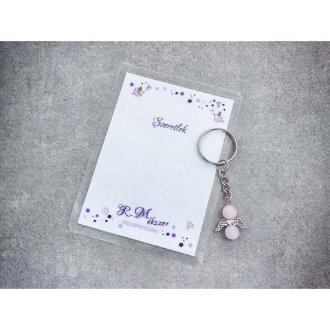 Számotokra állítottunk össze egy kedves meglepetést!"Szeretlek"feliratos ajándékkártya rózsakvarc kulcstartóvalA kulcstartót a kártyával együtt kapjátok meg!A köszönő csomag tartalma: 1 db rózsakvarc díszes kulcstartó 1 db köszönő kártyaVan, amikor nehéz szavakat találni, vagy egészen egyszerűen hangok nélkül szeretnénk kifejezni a gondolatainkat, érzéseinket. Ebben segítenek kívánság vagy köszönő kártyáink, melyek a kiválasztott kulcstartóval együtt csodálatos ajándékok lehetnek. A laminált kívánság kártya mérete 110×80 mm.Amit a rózsakvarcról érdemes tudnod:A festetlen rózsakvarc az egész világos, szinte áttetszőtől, a ködös középrózsaszínig terjed. Az egyik legnépszerűbb kövek egyike, amely szépséges küllemének és erős gyógyhatásának köszönhető. Története a görög és római mitológiába nyúlik vissza, amely szerint a rózsakvarc Erósznak és Ámornak a szerelem Isteneinek az emberek felé nyújtott ajándéka.Lelki gyógyhatás:Már tehát az ókoriak is hittek a kő szerelem terén gyakorolt pozitív hatásaiban. A rózsakvarc a szívcsakrán keresztül segít az érzelmi blokádok feloldásában, megnyitja belső kapukat, hogy a csodát, szeretetet és szerelem formájában magunkévá tehessük. Érzelmi blokkok feloldása a szerelem lelki és testi kiteljesedését segíti. Az érzelmi gátak felszabadítása a termékenységet is magában hordozza, így ez a kő terméketlenség esetén is hasznos lehet. A rózsakvarc egyéb területeken is bizonyíthatja pozitív hatásait. Mivel segít megtalálni az életben a szépséget és a szeretet lelki egyensúlyunk helyre billentése és alkotó gondolatok megtalálása terén is hasznunkra lehet ez az ásvány. Használjuk meditáció közben haragunk leküzdéséhez és szeretetünk, szerelmünk kiteljesítéséhez.Testi gyógyhatás:Ez a rózsaszín különlegesség testi bajainkra gyógyírt jelenthet, mint a szívcsakra köve, a bőrbetegségek, asztma, allergia és vérszegénység ellen használhatjuk. Védi és erősíti a szívet, harmonizálja a szívritmust.Hozzárendelt mágikus hatás:Sokak szerint a rózsakvarc nem csak a már meglévő szerelmünk intenzívebbé tételében segíthet, hanem az áhított szerelem megtalálásában, magunkhoz vonzásában is.Csillagjegyei: Bika, Rák, MérlegCsakrája: SzívcsakraFigyelem! Az ásványokat, kristályokat az őskor óta használják a test, a lélek és az érzelmek harmonizálására. Az ókori kultúrákban kifejezetten elterjedtek voltak. Az évezredek alatt számtalan tudás és tapasztalat gyűlt össze róluk. Ásvány ékszereink leírásánál a meghatározó szakirodalom alapján készült összegzések olvashatók. Fontos! Az ásvány ékszerek viselése, az ásványok és kristályok gyógyításban, alternatív terápiaként való használata nem helyettesíti a modern orvostudományt, a gyógyszeres kezelést. Betegség esetén az öngyógyítás helyett kérjük, forduljon szakemberhez!