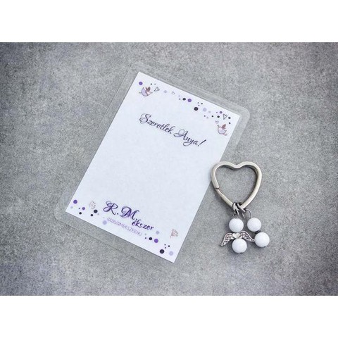 Számotokra állítottunk össze egy kedves meglepetést!"Szeretlek, Anya!"feliratos ajándékkártya tejkvarc kulcstartóvalA kulcstartót a kártyával együtt kapjátok meg!A köszönő csomag tartalma: 1 db tejkvarc díszes kulcstartó 1 db köszönő kártyaVan, amikor nehéz szavakat találni, vagy egészen egyszerűen hangok nélkül szeretnénk kifejezni a gondolatainkat, érzéseinket. Ebben segítenek kívánság vagy köszönő kártyáink, melyek a kiválasztott kulcstartóval együtt csodálatos ajándékok lehetnek. A laminált kívánság kártya mérete 110×80 mm.Amit a tejkvarcról érdemes tudnod:Segít felidézni gyermeki énünket, utat nyit az ártatlanság, a lelkesedés felé. A gyermeki ártatlanság, és előítélet mentes kíváncsiságával fedezhetjük fel újra a világot. Erősíti az életbe vetett hitet, feloldja a szomorúságot, bánatot. Serkenti az empátiát és együttérzést. Rendkívüli nyugtató kő, harmonizálja az energiákat, elűzi a kétségeket, segít a „szívvel” látni. Harmonizáló hatásának köszönhetően csillapítja a hangulatváltozások okozta depresszív érzéseket, segíti a tudatos irányítás kifejlesztését. Stabilizálja a lelki egyensúlyt, kiváló segítség átmeneti időszakokban, mint pl. a változó kor. Segít visszaemlékezni céljaidra, tiszta vágyaidra, melyeket a napi rutin eltompított. Feloldja a korlátokat, segíti a tanulást, szövegértést, javítja a memóriát. Segíti a nyugodt alvást, és kellemes álmokat hoz. Lehet párosítani Rózsakvarccal, vagy Lepidolittal a kellemes, kikapcsolódást segítő pihenés érdekében. A számítógép monitora elé helyezve elnyeli a káros sugárzásokat.Testi gyógyhatások:Segíti a nyugodt, pihentető alvást. Serkenti az immunrendszert, kiegyensúlyozza a csakrák működését. Gyógyhatását kifejti a női ivarszervekre, oldja a szexuális zavarokat.Lelki gyógyhatások:Nyugtató hatásával elősegíti a meditatív állapot elérését, oldja a mentális blokkokat. Kiváló segítség érzelmi blokkok oldásához. Elősegíti a kommunikációt a Felsőbb Énnel és a szellem vezetőkkel.Figyelem! Az ásványokat, kristályokat az őskor óta használják a test, a lélek és az érzelmek harmonizálására. Az ókori kultúrákban kifejezetten elterjedtek voltak. Az évezredek alatt számtalan tudás és tapasztalat gyűlt össze róluk. Ásvány ékszereink leírásánál a meghatározó szakirodalom alapján készült összegzések olvashatók. Fontos! Az ásvány ékszerek viselése, az ásványok és kristályok gyógyításban, alternatív terápiaként való használata nem helyettesíti a modern orvostudományt, a gyógyszeres kezelést. Betegség esetén az öngyógyítás helyett kérjük, forduljon szakemberhez!