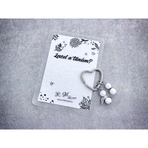 Számotokra állítottunk össze egy kedves meglepetést!"Leszel a tanúm?"feliratos ajándékkártya tejkvarc kulcstartóvalA kulcstartót a kártyával együtt kapjátok meg!A köszönő csomag tartalma: 1 db tejkvarc díszes kulcstartó 1 db köszönő kártyaVan, amikor nehéz szavakat találni, vagy egészen egyszerűen hangok nélkül szeretnénk kifejezni a gondolatainkat, érzéseinket. Ebben segítenek kívánság vagy köszönő kártyáink, melyek a kiválasztott kulcstartóval együtt csodálatos ajándékok lehetnek. A laminált kívánság kártya mérete 110×80 mm.Amit a tejkvarcról érdemes tudnod:Segít felidézni gyermeki énünket, utat nyit az ártatlanság, a lelkesedés felé. A gyermeki ártatlanság, és előítélet mentes kíváncsiságával fedezhetjük fel újra a világot. Erősíti az életbe vetett hitet, feloldja a szomorúságot, bánatot. Serkenti az empátiát és együttérzést. Rendkívüli nyugtató kő, harmonizálja az energiákat, elűzi a kétségeket, segít a „szívvel” látni. Harmonizáló hatásának köszönhetően csillapítja a hangulatváltozások okozta depresszív érzéseket, segíti a tudatos irányítás kifejlesztését. Stabilizálja a lelki egyensúlyt, kiváló segítség átmeneti időszakokban, mint pl. a változó kor. Segít visszaemlékezni céljaidra, tiszta vágyaidra, melyeket a napi rutin eltompított. Feloldja a korlátokat, segíti a tanulást, szövegértést, javítja a memóriát. Segíti a nyugodt alvást, és kellemes álmokat hoz. Lehet párosítani Rózsakvarccal, vagy Lepidolittal a kellemes, kikapcsolódást segítő pihenés érdekében. A számítógép monitora elé helyezve elnyeli a káros sugárzásokat.Testi gyógyhatások:Segíti a nyugodt, pihentető alvást. Serkenti az immunrendszert, kiegyensúlyozza a csakrák működését. Gyógyhatását kifejti a női ivarszervekre, oldja a szexuális zavarokat.Lelki gyógyhatások:Nyugtató hatásával elősegíti a meditatív állapot elérését, oldja a mentális blokkokat. Kiváló segítség érzelmi blokkok oldásához. Elősegíti a kommunikációt a Felsőbb Énnel és a szellem vezetőkkel.Figyelem! Az ásványokat, kristályokat az őskor óta használják a test, a lélek és az érzelmek harmonizálására. Az ókori kultúrákban kifejezetten elterjedtek voltak. Az évezredek alatt számtalan tudás és tapasztalat gyűlt össze róluk. Ásvány ékszereink leírásánál a meghatározó szakirodalom alapján készült összegzések olvashatók. Fontos! Az ásvány ékszerek viselése, az ásványok és kristályok gyógyításban, alternatív terápiaként való használata nem helyettesíti a modern orvostudományt, a gyógyszeres kezelést. Betegség esetén az öngyógyítás helyett kérjük, forduljon szakemberhez!