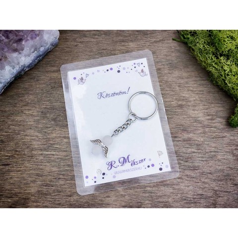 Számotokra állítottunk össze egy kedves meglepetést!"Köszönöm"feliratos ajándékkártya rózsakvarc kulcstartóvalA kulcstartót a kártyával együtt kapjátok meg!A köszönő csomag tartalma: 1 db rózsakvarc díszes kulcstartó 1 db köszönő kártyaVan, amikor nehéz szavakat találni, vagy egészen egyszerűen hangok nélkül szeretnénk kifejezni a gondolatainkat, érzéseinket. Ebben segítenek kívánság vagy köszönő kártyáink, melyek a kiválasztott kulcstartóval együtt csodálatos ajándékok lehetnek. A laminált kívánság kártya mérete 110×80 mm.Amit a rózsakvarcról érdemes tudnod:A festetlen rózsakvarc az egész világos, szinte áttetszőtől, a ködös középrózsaszínig terjed. Az egyik legnépszerűbb kövek egyike, amely szépséges küllemének és erős gyógyhatásának köszönhető. Története a görög és római mitológiába nyúlik vissza, amely szerint a rózsakvarc Erósznak és Ámornak a szerelem Isteneinek az emberek felé nyújtott ajándéka.Lelki gyógyhatás:Már tehát az ókoriak is hittek a kő szerelem terén gyakorolt pozitív hatásaiban. A rózsakvarc a szívcsakrán keresztül segít az érzelmi blokádok feloldásában, megnyitja belső kapukat, hogy a csodát, szeretetet és szerelem formájában magunkévá tehessük. Érzelmi blokkok feloldása a szerelem lelki és testi kiteljesedését segíti. Az érzelmi gátak felszabadítása a termékenységet is magában hordozza, így ez a kő terméketlenség esetén is hasznos lehet. A rózsakvarc egyéb területeken is bizonyíthatja pozitív hatásait. Mivel segít megtalálni az életben a szépséget és a szeretet lelki egyensúlyunk helyre billentése és alkotó gondolatok megtalálása terén is hasznunkra lehet ez az ásvány. Használjuk meditáció közben haragunk leküzdéséhez és szeretetünk, szerelmünk kiteljesítéséhez.Testi gyógyhatás:Ez a rózsaszín különlegesség testi bajainkra gyógyírt jelenthet, mint a szívcsakra köve, a bőrbetegségek, asztma, allergia és vérszegénység ellen használhatjuk. Védi és erősíti a szívet, harmonizálja a szívritmust.Hozzárendelt mágikus hatás:Sokak szerint a rózsakvarc nem csak a már meglévő szerelmünk intenzívebbé tételében segíthet, hanem az áhított szerelem megtalálásában, magunkhoz vonzásában is.Csillagjegyei: Bika, Rák, MérlegCsakrája: SzívcsakraFigyelem! Az ásványokat, kristályokat az őskor óta használják a test, a lélek és az érzelmek harmonizálására. Az ókori kultúrákban kifejezetten elterjedtek voltak. Az évezredek alatt számtalan tudás és tapasztalat gyűlt össze róluk. Ásvány ékszereink leírásánál a meghatározó szakirodalom alapján készült összegzések olvashatók. Fontos! Az ásvány ékszerek viselése, az ásványok és kristályok gyógyításban, alternatív terápiaként való használata nem helyettesíti a modern orvostudományt, a gyógyszeres kezelést. Betegség esetén az öngyógyítás helyett kérjük, forduljon szakemberhez!