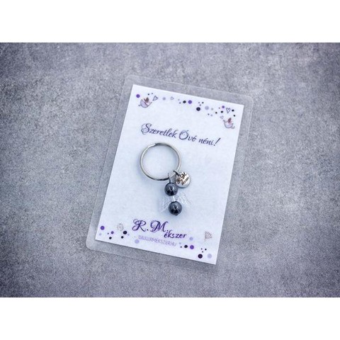 Számotokra állítottunk össze egy kedves meglepetést!"Szeretlek, Óvó néni!"feliratos ajándékkártya hematit kulcstartóvalA kulcstartót a kártyával együtt kapjátok meg!A köszönő csomag tartalma: 1 db hematit díszes kulcstartó 1 db köszönő kártyaVan, amikor nehéz szavakat találni, vagy egészen egyszerűen hangok nélkül szeretnénk kifejezni a gondolatainkat, érzéseinket. Ebben segítenek kívánság vagy köszönő kártyáink, melyek a kiválasztott kulcstartóval együtt csodálatos ajándékok lehetnek. A laminált kívánság kártya mérete 110×80 mm.Amit a hematitról tudni érdemes:Ez a metálosan csillogó szürkés-barnás kő más néven "vérkőként" is ismertté vált. Ez az elnevezés nem csak testi gyógyhatásai miatt illik rá, hanem mert csiszolásuk során az ember ujját vérpiros színűvé festi. A hematit egy erős energiakő, segítségével a többi ásványi követ is feltölthetjük.Lelki gyógyhatás:A hematit körénk "épít" egy védőkorlátot, amely egyrészt segít bátrabban, céltudatosabban mozogni a világban, másrészt ellenállóbbá tesz a külső befolyásokkal szemben. A hematit fokozza a dinamikánkat, vitalitásunkat, aktiválja az akaraterőnket, javítva ezáltal az életminőségünkön. Mivel aktiváló hatású, így nem ajánlott használata pihenések alkalmával.Testi gyógyhatás:A már említett vöröses színe a magas vastartalmából adódik a kőnek, így igen hatásos a vérrel kapcsolatos betegségekre, így tehát pozitívan hat a vérképre, vérszegénység ellen is jó, kiegyenlíti a vérnyomás ingadozásait. Kiváló érelmeszesedés, lábdagadás, visszerek ellen. Hatására a vérömlenyek sokkal gyorsabban elmúlnak. Aranyér ellen is hatásos. Fokozza a test regenerálódási folyamatait, elősegíti a sebek gyógyulását. Segíti a májfunkciókat, így használatuk különösen ajánlott méregtelenítő kúrák során. Segít a rendszertelen menstruációkon is. Babavárás alatti fáradtság enyhítésére különösen ajánlott.Hozzárendelt mágikus hatás:Szerencsehozó amulettként ismert volt már a régi korokban, Babyloniában pl. segített a tulajdonosának megnyerni mindent pert. Az ősi Egyiptomban a hematitot a halottak feje alá tették, hogy megkönnyítse a lélek útját az örökkévalóságba. Magát Tutanhamont is egy hematitból készült szkarabeusz kísérte a végtelenbe tartó úton. A hematit ezen kívül megvéd a gonosz átkok ellen és óvja álmainkat.Csillagjegyei: Bak, Vízöntő, Kos, SkorpióCsakrája: GyökércsakraFigyelem! Az ásványokat, kristályokat az őskor óta használják a test, a lélek és az érzelmek harmonizálására. Az ókori kultúrákban kifejezetten elterjedtek voltak. Az évezredek alatt számtalan tudás és tapasztalat gyűlt össze róluk. Ásvány ékszereink leírásánál a meghatározó szakirodalom alapján készült összegzések olvashatók. Fontos! Az ásvány ékszerek viselése, az ásványok és kristályok gyógyításban, alternatív terápiaként való használata nem helyettesíti a modern orvostudományt, a gyógyszeres kezelést. Betegség esetén az öngyógyítás helyett kérjük, forduljon szakemberhez!