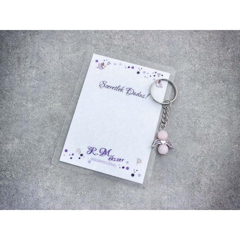 Számotokra állítottunk össze egy kedves meglepetést!"Szeretlek, Dadus!"feliratos ajándékkártya rózsakvarc kulcstartóvalA kulcstartót a kártyával együtt kapjátok meg!A köszönő csomag tartalma: 1 db rózsakvarc díszes kulcstartó 1 db köszönő kártyaVan, amikor nehéz szavakat találni, vagy egészen egyszerűen hangok nélkül szeretnénk kifejezni a gondolatainkat, érzéseinket. Ebben segítenek kívánság vagy köszönő kártyáink, melyek a kiválasztott kulcstartóval együtt csodálatos ajándékok lehetnek. A laminált kívánság kártya mérete 110×80 mm.Amit a rózsakvarcról érdemes tudnod:A festetlen rózsakvarc az egész világos, szinte áttetszőtől, a ködös középrózsaszínig terjed. Az egyik legnépszerűbb kövek egyike, amely szépséges küllemének és erős gyógyhatásának köszönhető. Története a görög és római mitológiába nyúlik vissza, amely szerint a rózsakvarc Erósznak és Ámornak a szerelem Isteneinek az emberek felé nyújtott ajándéka.Lelki gyógyhatás:Már tehát az ókoriak is hittek a kő szerelem terén gyakorolt pozitív hatásaiban. A rózsakvarc a szívcsakrán keresztül segít az érzelmi blokádok feloldásában, megnyitja belső kapukat, hogy a csodát, szeretetet és szerelem formájában magunkévá tehessük. Érzelmi blokkok feloldása a szerelem lelki és testi kiteljesedését segíti. Az érzelmi gátak felszabadítása a termékenységet is magában hordozza, így ez a kő terméketlenség esetén is hasznos lehet. A rózsakvarc egyéb területeken is bizonyíthatja pozitív hatásait. Mivel segít megtalálni az életben a szépséget és a szeretet lelki egyensúlyunk helyre billentése és alkotó gondolatok megtalálása terén is hasznunkra lehet ez az ásvány. Használjuk meditáció közben haragunk leküzdéséhez és szeretetünk, szerelmünk kiteljesítéséhez.Testi gyógyhatás:Ez a rózsaszín különlegesség testi bajainkra gyógyírt jelenthet, mint a szívcsakra köve, a bőrbetegségek, asztma, allergia és vérszegénység ellen használhatjuk. Védi és erősíti a szívet, harmonizálja a szívritmust.Hozzárendelt mágikus hatás:Sokak szerint a rózsakvarc nem csak a már meglévő szerelmünk intenzívebbé tételében segíthet, hanem az áhított szerelem megtalálásában, magunkhoz vonzásában is.Csillagjegyei: Bika, Rák, MérlegCsakrája: SzívcsakraFigyelem! Az ásványokat, kristályokat az őskor óta használják a test, a lélek és az érzelmek harmonizálására. Az ókori kultúrákban kifejezetten elterjedtek voltak. Az évezredek alatt számtalan tudás és tapasztalat gyűlt össze róluk. Ásvány ékszereink leírásánál a meghatározó szakirodalom alapján készült összegzések olvashatók. Fontos! Az ásvány ékszerek viselése, az ásványok és kristályok gyógyításban, alternatív terápiaként való használata nem helyettesíti a modern orvostudományt, a gyógyszeres kezelést. Betegség esetén az öngyógyítás helyett kérjük, forduljon szakemberhez!