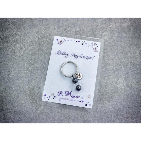 Számotokra állítottunk össze egy kedves meglepetést!"Boldog Anyák napját"feliratos ajándékkártya hematit kulcstartóvalA kulcstartót a kártyával együtt kapjátok meg!A köszönő csomag tartalma: 1 db hematit díszes kulcstartó 1 db köszönő kártyaVan, amikor nehéz szavakat találni, vagy egészen egyszerűen hangok nélkül szeretnénk kifejezni a gondolatainkat, érzéseinket. Ebben segítenek kívánság vagy köszönő kártyáink, melyek a kiválasztott kulcstartóval együtt csodálatos ajándékok lehetnek. A laminált kívánság kártya mérete 110×80 mm.Amit a hematitról tudni érdemes:Ez a metálosan csillogó szürkés-barnás kő más néven "vérkőként" is ismertté vált. Ez az elnevezés nem csak testi gyógyhatásai miatt illik rá, hanem mert csiszolásuk során az ember ujját vérpiros színűvé festi. A hematit egy erős energiakő, segítségével a többi ásványi követ is feltölthetjük.Lelki gyógyhatás:A hematit körénk "épít" egy védőkorlátot, amely egyrészt segít bátrabban, céltudatosabban mozogni a világban, másrészt ellenállóbbá tesz a külső befolyásokkal szemben. A hematit fokozza a dinamikánkat, vitalitásunkat, aktiválja az akaraterőnket, javítva ezáltal az életminőségünkön. Mivel aktiváló hatású, így nem ajánlott használata pihenések alkalmával.Testi gyógyhatás:A már említett vöröses színe a magas vastartalmából adódik a kőnek, így igen hatásos a vérrel kapcsolatos betegségekre, így tehát pozitívan hat a vérképre, vérszegénység ellen is jó, kiegyenlíti a vérnyomás ingadozásait. Kiváló érelmeszesedés, lábdagadás, visszerek ellen. Hatására a vérömlenyek sokkal gyorsabban elmúlnak. Aranyér ellen is hatásos. Fokozza a test regenerálódási folyamatait, elősegíti a sebek gyógyulását. Segíti a májfunkciókat, így használatuk különösen ajánlott méregtelenítő kúrák során. Segít a rendszertelen menstruációkon is. Babavárás alatti fáradtság enyhítésére különösen ajánlott.Hozzárendelt mágikus hatás:Szerencsehozó amulettként ismert volt már a régi korokban, Babyloniában pl. segített a tulajdonosának megnyerni mindent pert. Az ősi Egyiptomban a hematitot a halottak feje alá tették, hogy megkönnyítse a lélek útját az örökkévalóságba. Magát Tutanhamont is egy hematitból készült szkarabeusz kísérte a végtelenbe tartó úton. A hematit ezen kívül megvéd a gonosz átkok ellen és óvja álmainkat.Csillagjegyei: Bak, Vízöntő, Kos, SkorpióCsakrája: GyökércsakraFigyelem! Az ásványokat, kristályokat az őskor óta használják a test, a lélek és az érzelmek harmonizálására. Az ókori kultúrákban kifejezetten elterjedtek voltak. Az évezredek alatt számtalan tudás és tapasztalat gyűlt össze róluk. Ásvány ékszereink leírásánál a meghatározó szakirodalom alapján készült összegzések olvashatók. Fontos! Az ásvány ékszerek viselése, az ásványok és kristályok gyógyításban, alternatív terápiaként való használata nem helyettesíti a modern orvostudományt, a gyógyszeres kezelést. Betegség esetén az öngyógyítás helyett kérjük, forduljon szakemberhez!