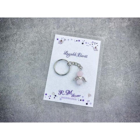 Számotokra állítottunk össze egy kedves meglepetést!"Legjobb barátomnak"feliratos ajándékkártya rózsakvarc kulcstartóvalA kulcstartót a kártyával együtt kapjátok meg!A köszönő csomag tartalma: 1 db rózsakvarc díszes kulcstartó 1 db köszönő kártyaVan, amikor nehéz szavakat találni, vagy egészen egyszerűen hangok nélkül szeretnénk kifejezni a gondolatainkat, érzéseinket. Ebben segítenek kívánság vagy köszönő kártyáink, melyek a kiválasztott kulcstartóval együtt csodálatos ajándékok lehetnek. A laminált kívánság kártya mérete 110×80 mm.Amit a rózsakvarcról érdemes tudnod:A festetlen rózsakvarc az egész világos, szinte áttetszőtől, a ködös középrózsaszínig terjed. Az egyik legnépszerűbb kövek egyike, amely szépséges küllemének és erős gyógyhatásának köszönhető. Története a görög és római mitológiába nyúlik vissza, amely szerint a rózsakvarc Erósznak és Ámornak a szerelem Isteneinek az emberek felé nyújtott ajándéka.Lelki gyógyhatás:Már tehát az ókoriak is hittek a kő szerelem terén gyakorolt pozitív hatásaiban. A rózsakvarc a szívcsakrán keresztül segít az érzelmi blokádok feloldásában, megnyitja belső kapukat, hogy a csodát, szeretetet és szerelem formájában magunkévá tehessük. Érzelmi blokkok feloldása a szerelem lelki és testi kiteljesedését segíti. Az érzelmi gátak felszabadítása a termékenységet is magában hordozza, így ez a kő terméketlenség esetén is hasznos lehet. A rózsakvarc egyéb területeken is bizonyíthatja pozitív hatásait. Mivel segít megtalálni az életben a szépséget és a szeretet lelki egyensúlyunk helyre billentése és alkotó gondolatok megtalálása terén is hasznunkra lehet ez az ásvány. Használjuk meditáció közben haragunk leküzdéséhez és szeretetünk, szerelmünk kiteljesítéséhez.Testi gyógyhatás:Ez a rózsaszín különlegesség testi bajainkra gyógyírt jelenthet, mint a szívcsakra köve, a bőrbetegségek, asztma, allergia és vérszegénység ellen használhatjuk. Védi és erősíti a szívet, harmonizálja a szívritmust.Hozzárendelt mágikus hatás:Sokak szerint a rózsakvarc nem csak a már meglévő szerelmünk intenzívebbé tételében segíthet, hanem az áhított szerelem megtalálásában, magunkhoz vonzásában is.Csillagjegyei: Bika, Rák, MérlegCsakrája: SzívcsakraFigyelem! Az ásványokat, kristályokat az őskor óta használják a test, a lélek és az érzelmek harmonizálására. Az ókori kultúrákban kifejezetten elterjedtek voltak. Az évezredek alatt számtalan tudás és tapasztalat gyűlt össze róluk. Ásvány ékszereink leírásánál a meghatározó szakirodalom alapján készült összegzések olvashatók. Fontos! Az ásvány ékszerek viselése, az ásványok és kristályok gyógyításban, alternatív terápiaként való használata nem helyettesíti a modern orvostudományt, a gyógyszeres kezelést. Betegség esetén az öngyógyítás helyett kérjük, forduljon szakemberhez!