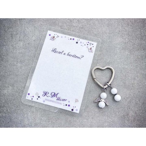 Számotokra állítottunk össze egy kedves meglepetést!"Leszel a barátom?"feliratos ajándékkártya tejkvarc kulcstartóvalA kulcstartót a kártyával együtt kapjátok meg!A köszönő csomag tartalma: 1 db tejkvarc díszes kulcstartó 1 db köszönő kártyaVan, amikor nehéz szavakat találni, vagy egészen egyszerűen hangok nélkül szeretnénk kifejezni a gondolatainkat, érzéseinket. Ebben segítenek kívánság vagy köszönő kártyáink, melyek a kiválasztott kulcstartóval együtt csodálatos ajándékok lehetnek. A laminált kívánság kártya mérete 110×80 mm.Amit a tejkvarcról érdemes tudnod:Segít felidézni gyermeki énünket, utat nyit az ártatlanság, a lelkesedés felé. A gyermeki ártatlanság, és előítélet mentes kíváncsiságával fedezhetjük fel újra a világot. Erősíti az életbe vetett hitet, feloldja a szomorúságot, bánatot. Serkenti az empátiát és együttérzést. Rendkívüli nyugtató kő, harmonizálja az energiákat, elűzi a kétségeket, segít a „szívvel” látni. Harmonizáló hatásának köszönhetően csillapítja a hangulatváltozások okozta depresszív érzéseket, segíti a tudatos irányítás kifejlesztését. Stabilizálja a lelki egyensúlyt, kiváló segítség átmeneti időszakokban, mint pl. a változó kor. Segít visszaemlékezni céljaidra, tiszta vágyaidra, melyeket a napi rutin eltompított. Feloldja a korlátokat, segíti a tanulást, szövegértést, javítja a memóriát. Segíti a nyugodt alvást, és kellemes álmokat hoz. Lehet párosítani Rózsakvarccal, vagy Lepidolittal a kellemes, kikapcsolódást segítő pihenés érdekében. A számítógép monitora elé helyezve elnyeli a káros sugárzásokat.Testi gyógyhatások:Segíti a nyugodt, pihentető alvást. Serkenti az immunrendszert, kiegyensúlyozza a csakrák működését. Gyógyhatását kifejti a női ivarszervekre, oldja a szexuális zavarokat.Lelki gyógyhatások:Nyugtató hatásával elősegíti a meditatív állapot elérését, oldja a mentális blokkokat. Kiváló segítség érzelmi blokkok oldásához. Elősegíti a kommunikációt a Felsőbb Énnel és a szellem vezetőkkel.Figyelem! Az ásványokat, kristályokat az őskor óta használják a test, a lélek és az érzelmek harmonizálására. Az ókori kultúrákban kifejezetten elterjedtek voltak. Az évezredek alatt számtalan tudás és tapasztalat gyűlt össze róluk. Ásvány ékszereink leírásánál a meghatározó szakirodalom alapján készült összegzések olvashatók. Fontos! Az ásvány ékszerek viselése, az ásványok és kristályok gyógyításban, alternatív terápiaként való használata nem helyettesíti a modern orvostudományt, a gyógyszeres kezelést. Betegség esetén az öngyógyítás helyett kérjük, forduljon szakemberhez!