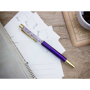 Golyóstoll ametiszt ásvány szemcsékkel. Az írószer filigrán darab, mely csodálatos ajándék lehet mindenféle ünnepre, legyen az névnap, születésnap, karácsony vagy akár Pedagógus nap. A tollba töltött szemcsék pozitív rezgéseit is érezheti az, aki a kezébe veszi. A tollbetét fekete.A toll mérete: 13 mm széles, 141 mm hosszú, 9.5 mm vastag.Amit az ametisztről tudnod érdemes:Az ametiszt a kvarccsoport legkedveltebb köve, az achát ásvány belső felszínén növekszik. Míg a kristály maga jó néhány centiméterre nő meg, az azt tartalmazó geóda akár több méter hosszú is lehet. Ennek a fenséges kőnek a színe a mély lilától a halvány levenduláig terjedhet a benne lévő magnézium és vas mennyiségétől függően. Az ametiszt a királyi ékszerek tradicionális színe volt, mivel a lila a jólétet és gazdagságot szimbolizálta. Az ametisztet még ma is siker kövének tekintik, használja büszkén!Lelki gyógyhatás:Leonardo Da Vinci egyszer azt írta, hogy az ametisztben megvan az erő a gonosz gondolatok elűzéséhez és élénkíti az egyén intelligenciáját. Az ametiszt a haragot és a dühöt a szeretet pozitív energiájává alakítja át. Megtanít, miként változtassunk be rögzött viselkedési mintáinkon. Lila színével koronacsakránkhoz csatlakozva nagy segítségünkre lehet stresszes időszakainkban, mivel természetes nyugtató hatással bír. Segít alvászavarok esetén is, idegrendszeri stabilizáló hatása végett. Megakadályozza a visszatérő rémálmok ismétlődését. Használjuk ezt a követ meditáció során, nagyszerű segítség az elmélyülésben, mivel az ametiszt a bennünk lakó Istennel rezonál és segít kitárni az elmét az új gondolatok előtt.Testi gyógyhatás:Légzési és asztmatikus problémákkal szenvedőknek is hatékony segítsége lehet. Enyhíti a torokfájást, tisztítja a vért, kiegyenlíti a vérnyomást, ill. javítja a látást, sőt színvakság gyógyítására is használják. Jótékony hatással bír a bőrbetegségekre, gyakran használják migrénes fejfájás ellen is. Erősen méregtelenítő hatású.Mágikus hatás: Az ametiszt erősen védelmező kő, viselőjének segít kivívnia a jogos igazát, de védelmez tolvajok, betörők és átkok ellen.Csillagjegyei: Szűz, Nyilas, Vízöntő, Halak, KosCsakrái: Gyökércsakra, Koronacsakra, Napfonatcsakra Figyelem! Az ásványokat, kristályokat az őskor óta használják a test, a lélek és az érzelmek harmonizálására. Az ókori kultúrákban kifejezetten elterjedtek voltak. Az évezredek alatt számtalan tudás és tapasztalat gyűlt össze róluk. Ásvány ékszereink leírásánál a meghatározó szakirodalom alapján készült összegzések olvashatók. Fontos! Az ásvány ékszerek viselése, az ásványok és kristályok gyógyításban, alternatív terápiaként való használata nem helyettesíti a modern orvostudományt, a gyógyszeres kezelést. Betegség esetén az öngyógyítás helyett kérjük, forduljon szakemberhez!