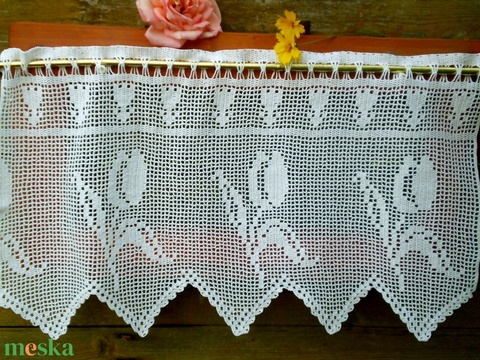 Tavaszi táncoló tulipánok. Romantikus-horgolt csipkés vitrázs függöny