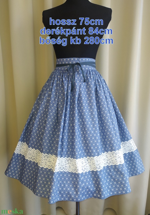 Néptánc szoknya, 75 cm kék, szürke, 2 szél bőség