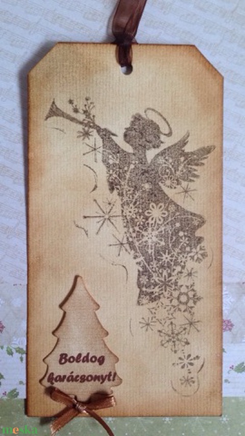 Könyvjelző - angyal bélyegzőminta -boldog karácsonyt felirattal- egyedi ajándékötlet - könyvimádóknak