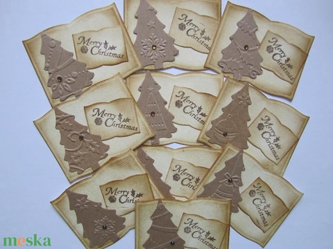 - Anyaga: karton, szatén szalag, kraft karton, ragasztó, tinta, bélyegző, domborminta