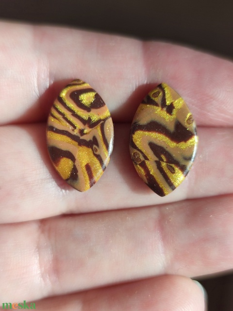 Őszi hangulatban- Csokoládébarna, bézs és arany mintázatú fülbevaló