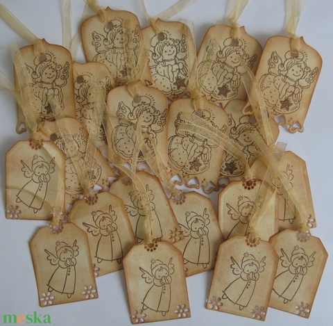 Angyal-kedvelőknek - bélyegzőmintával díszített ajándékkísérő - angyal kártya - kétféle mintával - kétféle kártyán