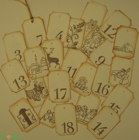 Adventi kártyák - számozott - bélyegzőmintával díszített