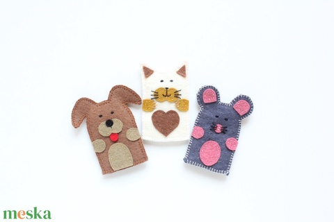 3 db ujjbáb - kutya, cica, egér gyapjúfilc ujjbábok