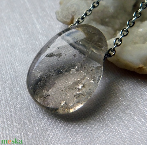 Orvosi acél szerelékre akasztottam ezt a különlegesen szép füstkvarc medált.