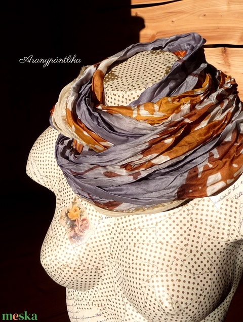 "AVAR SZÉPE" (hernyóselyem-muszlin gyűrt csősál) - Aranypántlika