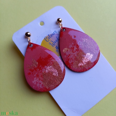 Piros és arany színű fa csepp fülbevaló