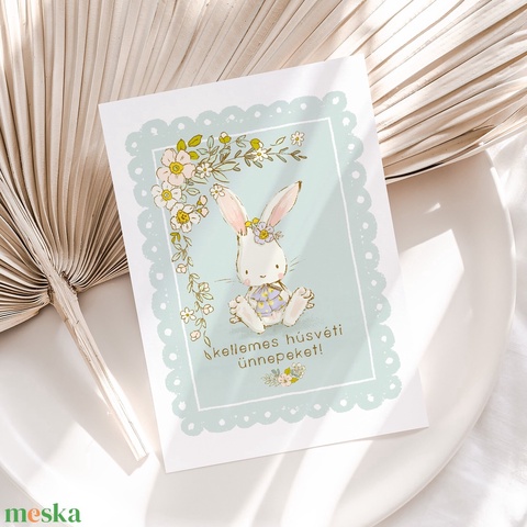 Húsvéti képeslap, nyuszis üdvözlőlap, ajándékkísérő