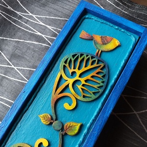 Kék madaras fa tolltartó