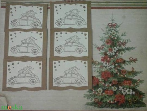 Karácsonyi ajándékkísérő autósoknak - domborminta - fenyőfa - egyedi ajándékkártya - vacsoravendég ültetőkártya