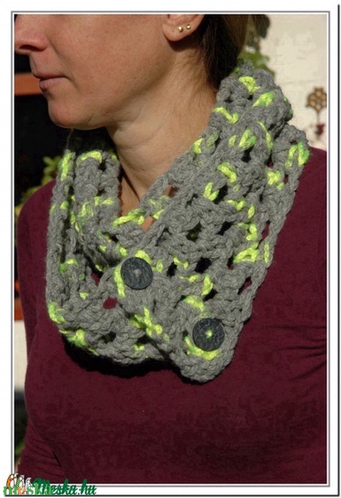 - Anyaga: gyapjú/akril/poliamid kevert fonal, gomb