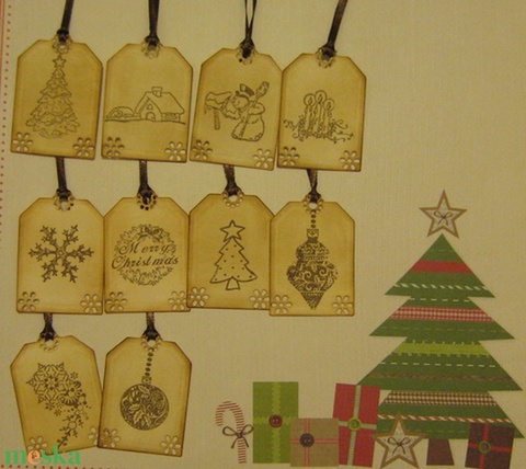 Tintázott karácsonyi ajándékkísérő - bélyegzőmintás díszítéssel - ajándékkártya - csoportajándék - egyedi termék - emlék