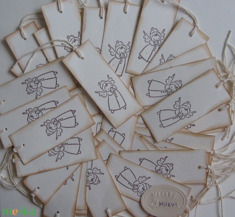 Egyedi karácsonyi tintázott szélű ajándékkísérő, termékcímke - angyalkártya -saját készítésű termékeidhez, ajándékaidhoz