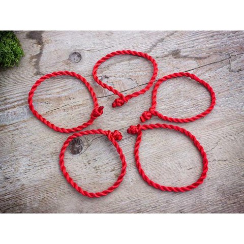 Kabbala védelmező vörös textil karkötő 5 dbos csomag