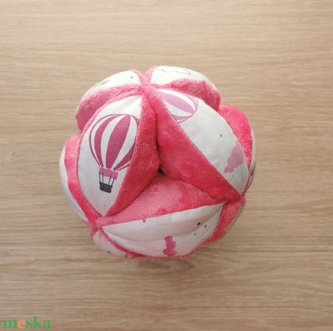 Montessori labda - "Rózsaszín hőlégballonos" sötét rózsaszín minky-vel