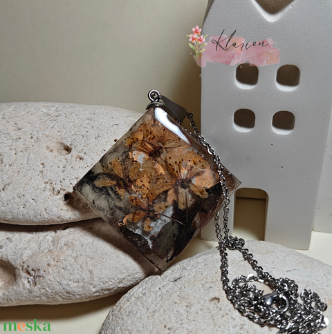 Örök tavasz nemesacél nyaklánc szárított virágos gyanta medállal