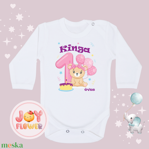 KISMACI TORTÁVAL - ELSŐ SZÜLINAPOS - EGYEDI FELIRATOS gyermek póló vagy kombidressz (body) aranyos grafikával