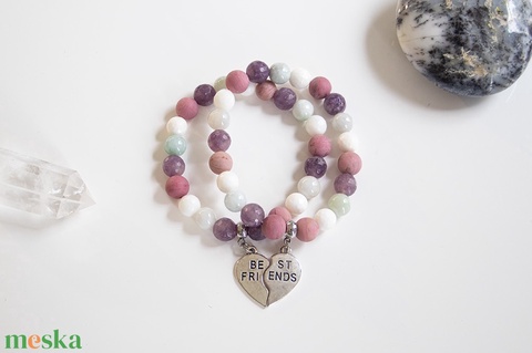 Páros karkötő, Best Friends karkötő, Bff ásvány karkötő - Thulit, Lepidolit, Kagyló, Burmai Jáde ásvány karkötő - L É L E K hangoló ásvány karkötő