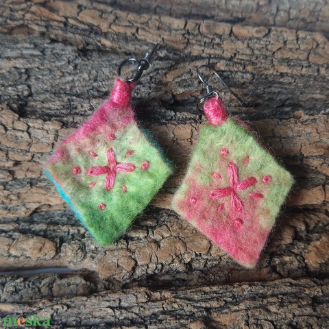 Bohém fülbevaló 1. - újra felhasznált anyagból készült, színes, gyapjú fülbevaló