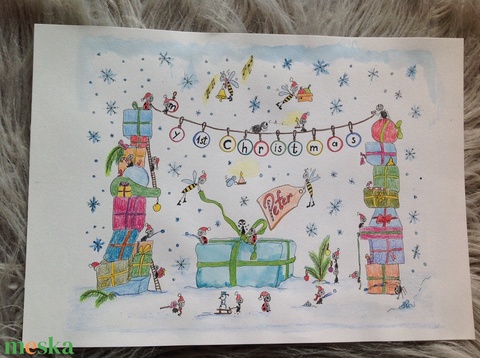 Karácsonyi Illusztráció, Első Karácsonyom, Baba Emlék, Ünnepi Emlék, Ünnepi Dekoráció, Adventi Készülődés