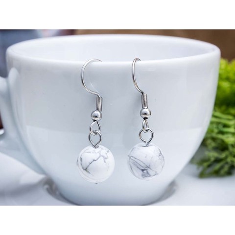 8 mm-es howlit ásvány gyöngyökből készült lógós fülbevaló. Letisztult ékszer, melyet önmagában is viselhetsz, de választhatsz a hozzá passzoló ásvány karkötők közül is. Amit a howlitról érdemes tudnod: A howlitot Henry How-ról, egy 19-ik századi ásványkutatóról nevezték el, aki elsőkét talált rá erre a sokoldalú kőre. A howlit festetlenül matt fehér, vagy elefántcsont-színű, barnás-feketés-márványos erezettel. Lelki gyógyhatás: A howlit támogatja az ítélőképességünket, erősíti az akaratot és a kitartást, ezzel együtt csökkenti a stressz szintünket. Mivel fejleszti együttérzésünket mások iránt, így másokkal szemben nagyobb nyíltsággal, elfogadókészséggel tudunk fellépni. Testi gyógyhatás: A howlit szabályozza az anyagcserét, csökkenti a folyadékraktározást. A súlyproblémákkal küzdők kövének tartják, mivel segíti a fogyást és a salaktalanítást. Szabályozza a savháztartást, segít gyomorégés, bélzavarok és hányinger esetében. Feloldja blokádjainkat, amelyek gátlásokat és komplexusokat okoznak. Hozzárendelt mágikus hatás: A párnánk alá helyezve megvéd a rémálmok ellen és mély, nyugodt alvással ajándékoz meg. Csillagjegyei: Mérleg, Ikrek Csakrái: Napfonatcsakra, Szakrális csakra Nikkelmentes ékszer. Egyedi tervezés alapján készült kézműves ékszer. Amennyiben egyéni kérésed van, vagy nem találod, amit szeretnél, keress engem bátran. Figyelem! Az ásványokat, kristályokat az őskor óta használják a test, a lélek és az érzelmek harmonizálására. Az ókori kultúrákban kifejezetten elterjedtek voltak. Az évezredek alatt számtalan tudás és tapasztalat gyűlt össze róluk. Ásvány ékszereink leírásánál a meghatározó szakirodalom alapján készült összegzések olvashatók. Fontos! Az ásvány ékszerek viselése, az ásványok és kristályok gyógyításban, alternatív terápiaként való használata nem helyettesíti a modern orvostudományt, a gyógyszeres kezelést. Betegség esetén az öngyógyítás helyett kérjük, forduljon szakemberhez!